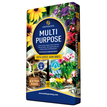 Growmoor Multi-purpose with John Innes has been comprised of a nutrient rich composition based on a traditional recipe of loam, peat and horticultural grit with added nutrients, by including loam it adds increased water retention and nutrients to plants in the compost. Our multi-purpose with John Innes has a pH of 5.5-6.0 and added with a base fertiliser which creates an optimum medium for most plants to grow apart from calcifuges.