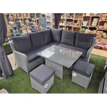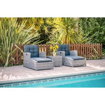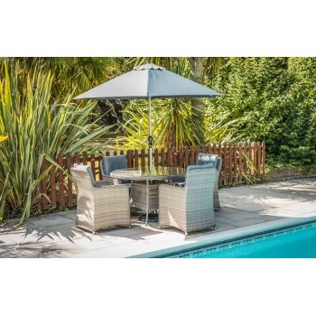 This table comes complete with a set of 6 modern designed high back reclining armchairs, with shower resistant cushioning.