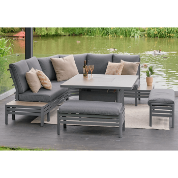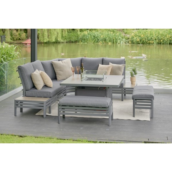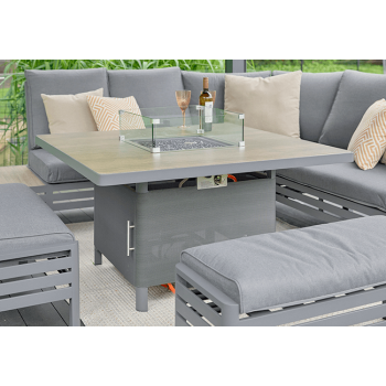 The LG Monza Large Modular Dining Set with Firepit Table combines a classy design with cozy functionality, featuring a spacious corner sofa and a gas firepit dining table.