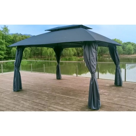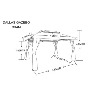 The Ultimate Outdoor Shelter Solution. Designed with high quality materials and modern features. One of the standout features is its reinforced frame made from large round heavy duty steel. Not only does this add to the overall sturdiness and durability of the gazebo, but it also makes assembly a breeze. The frame simply clicks together. The heavy duty steel frame is also powder coated to ensure it is rust-resistant, making it suitable for use in all weather conditions. Another great feature of this gazebo is its 100% polyester canopy. Not only is this fabric heavy duty and weather-resistant, but it is also fade-resistant. For added shelter and privacy the gazebo comes with four colour-matching side curtains.